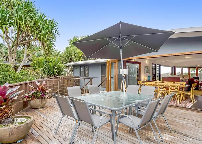 Deze 5-slaapkamer woning is een accommodatie in Byron Bay, niet ver van Cavvanbah Street. De wandeling naar het centrum van Byron Bay duurt 15 minuten. Gasten kunnen genieten van Midden-Amerikaanse keuken in Miss Margarita, gelegen op ongeveer 1 km.